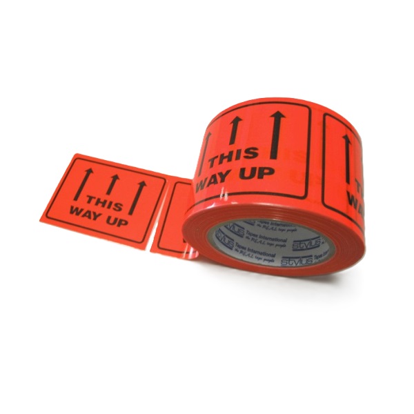 This bright orange tape features bold black text and arrows, making it easy for handlers to identify the correct positioning of your package.
